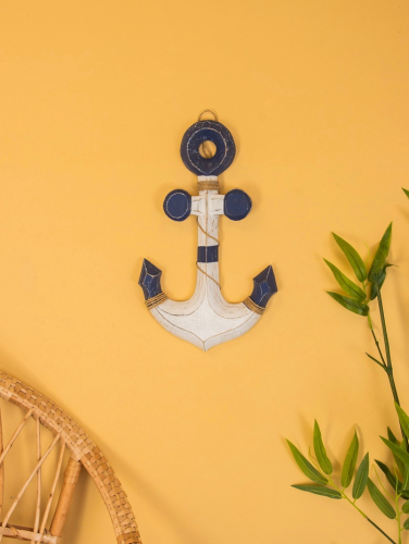 Декор интерьерный «Якорь», 23×2×40 см, дерево, бело-синий