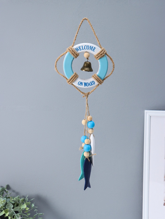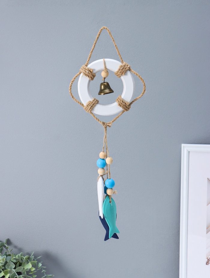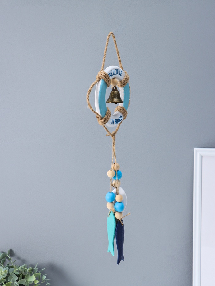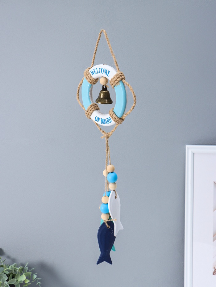 Этот морской оберег из дерева приносит в дом атмосферу спокойного моря и безопасной гавани. Композиция в виде спасательного круга с колоколом и рыбками станет тёплым напоминанием о путешествиях, символом удачи для моряка или стильным акцентом в интерьере в морском стиле.