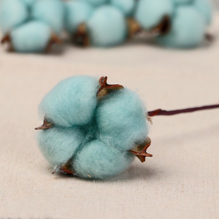 Декор сухоцвет «Хлопок», d=5 см, 30 см, голубой