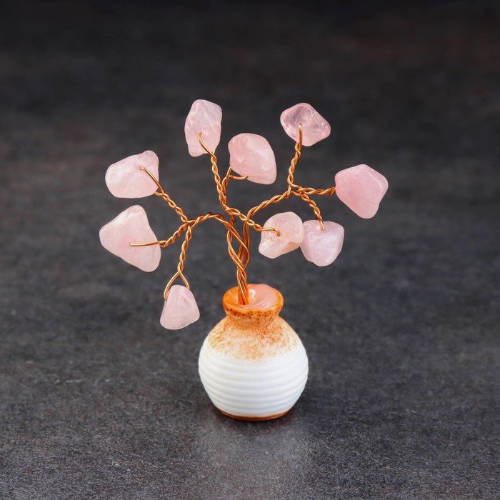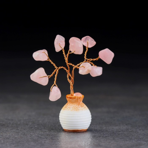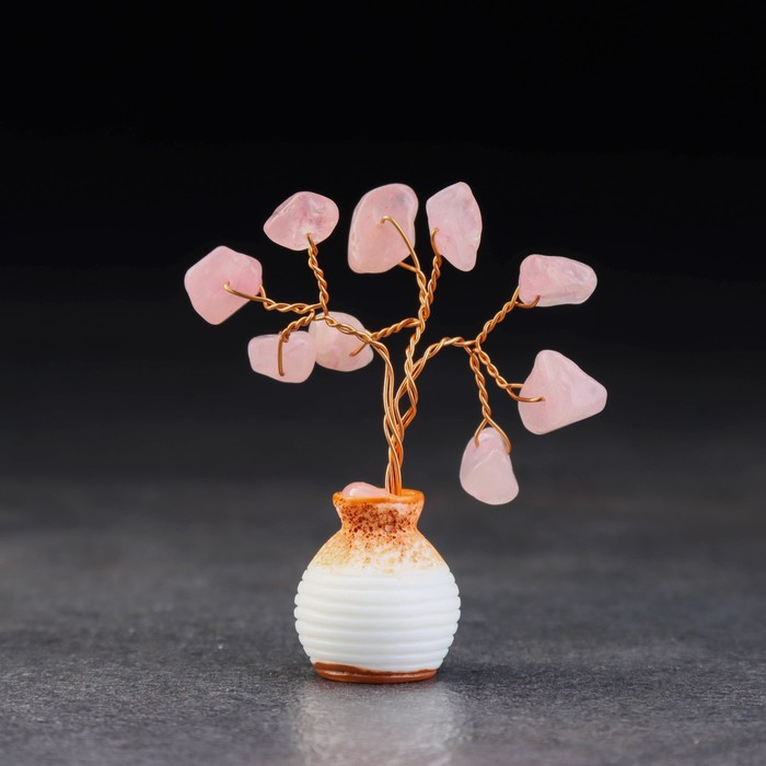 Денежное дерево декоративное «Сувенир бонсай. Любви. Розовый кварц», натуральный камень, 7×3 см
