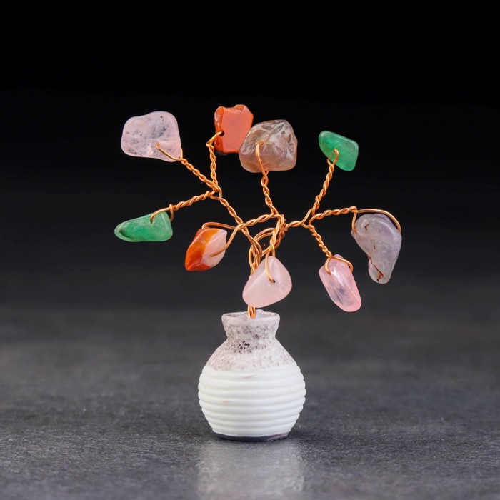 Денежное дерево декоративное «Сувенир бонсай. Дерево жизни. Самоцветы», натуральный камень, 7×3 см