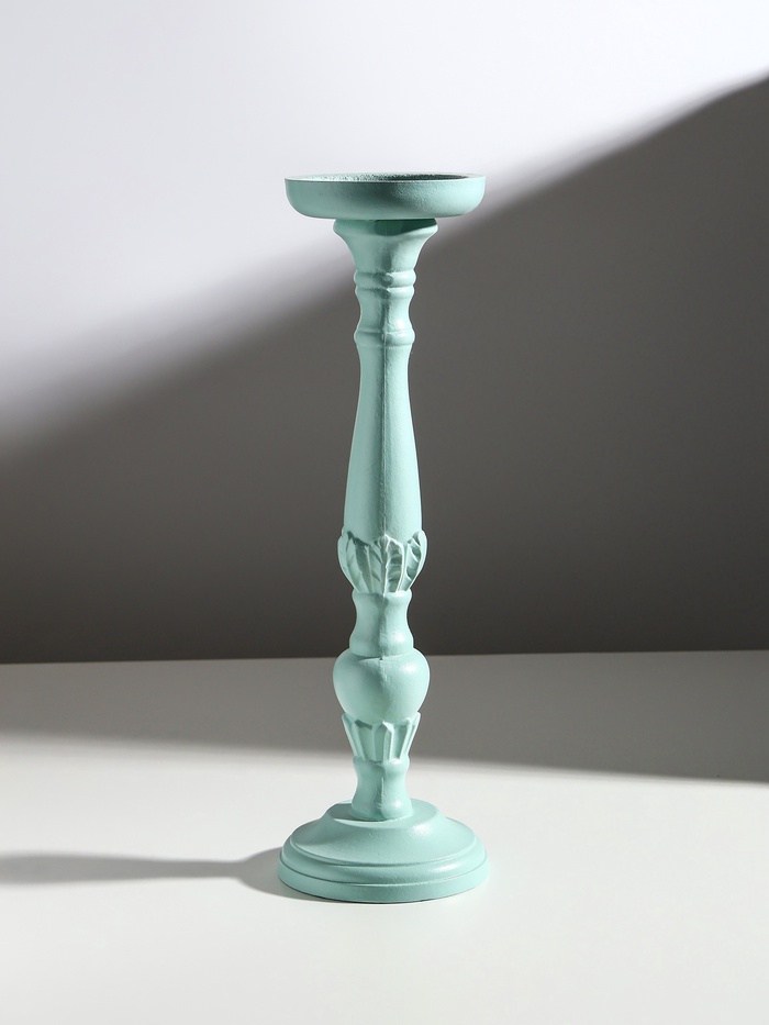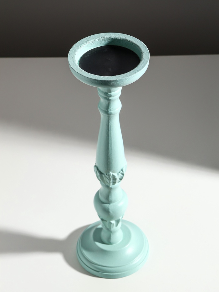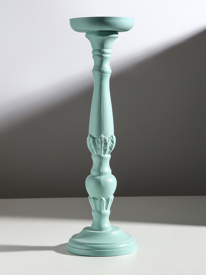 Деревянный подсвечник на 1 свечу «Колонна цветочная», зелёно-серый, 10×10×37 см