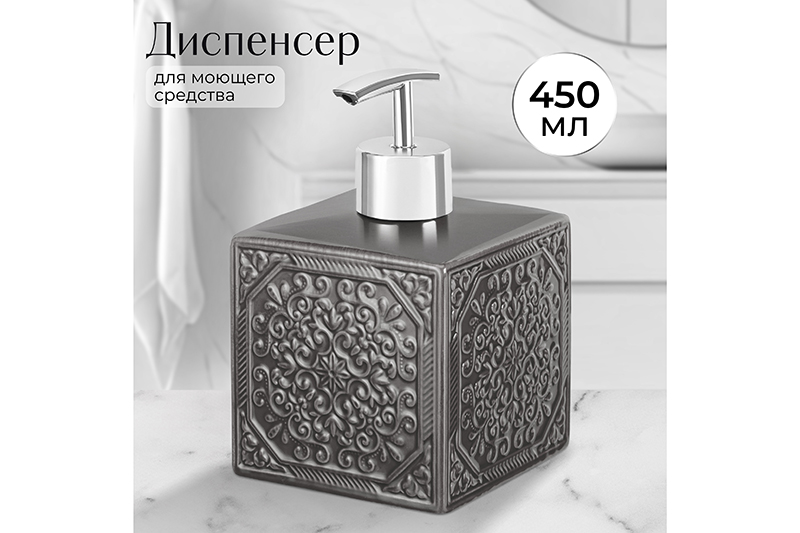 Настольный диспенсер от Elan Gallery подойдёт для хранения жидких моющих и очищающих средств. Размер изделия – 8,5х8,5х14 см, объём – 450 мл. Высота без дозатора – 10 см. Выполнен из керамики и имеет элегантный серый цвет. Поверхность изделия украшает благородный орнамент. Дозатор серебристого цвета выполнен из пластика. Он герметичен и надёжно предотвращает проливание. Благодаря красивому дизайну и необычной форме баночка найдёт место в любой части вашей квартиры. Заполните ёмкость жидким мылом или средством для посуды и расположите на кухонной раковине. В ванной используйте флакон под гель для душа или шампунь. Универсальную бутылочку можно приспособить под антисептик. Поставьте её на рабочий стол в своей комнате или кабинете, чтобы дезинфицирующее средство было под рукой. Не рекомендуется применять абразивные моющие средства. Не подходит для использования в посудомоечной машине. Для очистки изделия воспользуйтесь тёплой водой с добавлением моющего средства. Поставляется в дизайнерской картонной коробке – вам не потребуется дополнительная подарочная упаковка. Декоративный диспенсер от бренда Элан Галерея станет отличным подарком для родных и близких. Это не только практичный, но и эстетичный аксессуар для поддержания гигиены, подходящий под любой интерьер! /