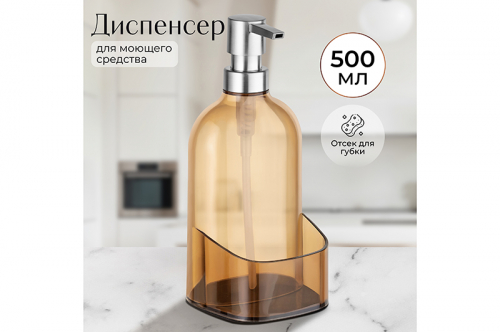 Настольный диспенсер от Elan Gallery подойдёт для хранения жидких моющих и очищающих средств. Размер изделия – 9,5х9,5х21 см, объём – 500 мл. Выполнен из пластика и имеет мягкий песочный оттенок, играющий под разным освещением оранжевым и коричневым оттенками. Он лаконично впишется в любой интерьер и добавит ему визуального тепла. Дозатор также выполнен из пластика и предотвратит излишнее проливание. Основание оснащено нескользящей поверхностью. Заполните ёмкость жидким мылом или средством для посуды и расположите на кухонной раковине. Имеется отделение для губки – с ним вы сможете компактно хранить всё необходимое для мытья посуды. В ванной используйте диспенсер под гель для душа или шампунь. Универсальную бутылочку можно приспособить под антисептик. Поставьте её на стол, чтобы дезинфицирующее средство всегда было под рукой. Дополнительное отделение можно приспособить для хранения салфеток, тряпочки для протирки экрана или мелких канцелярских принадлежностей. Не рекомендуется применять абразивные моющие средства. Не подходит для использования в посудомоечной машине. Для очистки изделия воспользуйтесь тёплой водой с добавлением моющего средства. Избегать регулярного прямого контакта с водой (не хранить в душевой кабинке или на полке возле душа). Поставляется в стильной картонной коробке – вам не потребуется дополнительная подарочная упаковка. Декоративный диспенсер от бренда Элан Галерея станет отличным подарком для родных и близких. Это не только практичное, но и эстетичное решение для поддержания чистоты и порядка в вашем доме! /