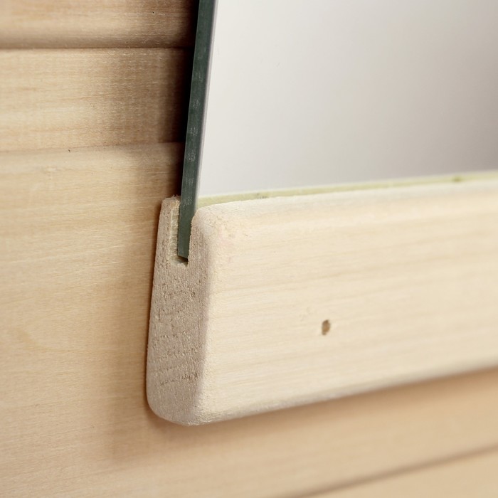 Такое зеркало подойдёт для бани и сауны. Дерево не выделяет вредных веществ при нагревании и подходит для помещений с высокой влажностью.