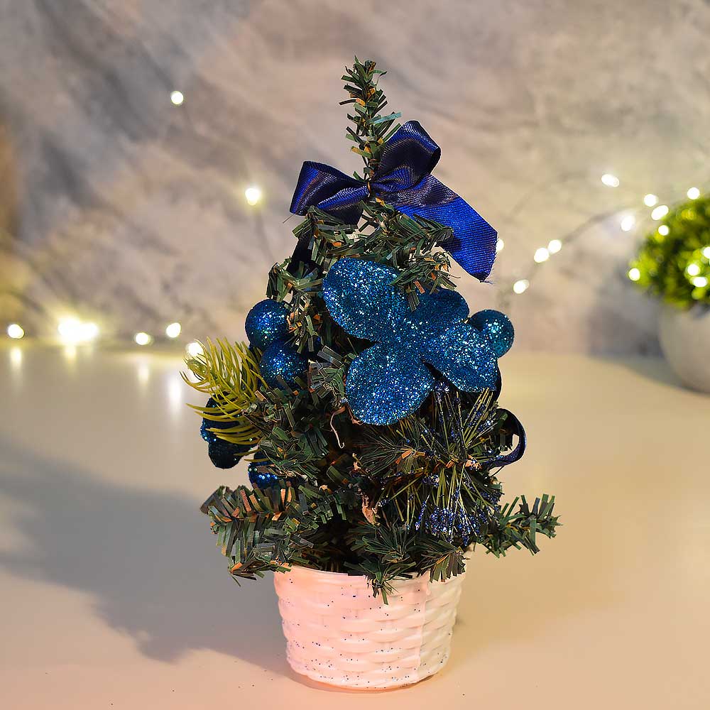 Елка настольная 20см в корзине с синими украшениями, Z-23A13N/4