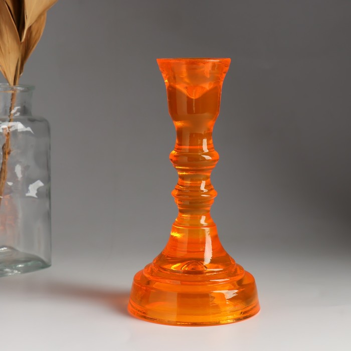 Стеклянный подсвечник на 1 свечу «Кристоф», оранжевый, 6.5×8.5 см, МИКС