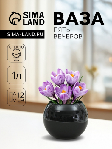 Ваза «Пять вечеров», шаровая, 1 л, 12×12×10 см, стекло, чёрная глянцевая преобразит пространство и как самостоятельный элемент декора. Наполните интерьер уютом!
