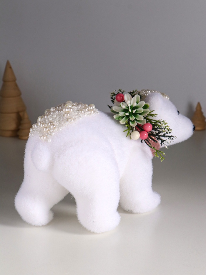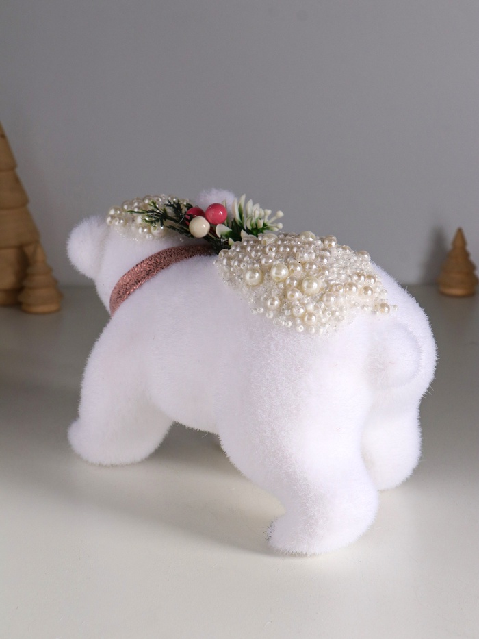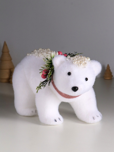 Фигурка «Белый мишка с еловым венком в бусинках», 13×23×13 см