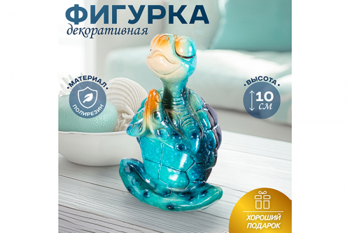 Декоративная фигурка Elan Gallery "Голубая черепашка в медитации" размером 7,5х5х10,5 см способна преобразить любое помещение. Статуэтка в виде забавной бирюзовой черепахи выполнена из полирезина и покрыта глазурью. Полирезин – это современный материал, который славится своей лёгкостью, устойчивостью к влаге и солнечным лучам. Он не выделяет вредных веществ и не имеет запаха. Полирезин легко поддается обработке, поэтому изделия из него славятся своей реалистичностью и проработанными деталями. Панцирь черепахи имеет насыщенный окрас, напоминающий поверхность сине-голубого камня. За счёт окраса и гладкой глазурованной поверхности создаётся ассоциация с бирюзой, что придаёт изделию из полирезина особого благородства. Привнесите эстетику в интерьер своей квартиры с помощью красивых мелочей! Умиротворённая черепашка медитирует, расслабленно прикрыв веки. Она станет оригинальным элементом декора и принесёт в дом гармонию и уют. Настольная фигурка украсит интерьер гостиной или спальни и создаст тёплую атмосферу. Превратите вашу кухню или дачу в уютное место благодаря этому сувениру! Вы можете разместить игрушку на полке, столе или создать декоративную композицию вместе с другими украшениями на камине. Она поможет украсить ваше рабочее место в офисе и сделает кабинет уютнее! Не рекомендуется применять абразивные моющие средства. В коллекции бренда Элан Галерея представлено много товаров для дома, предметов декора и сувенирной продукции для создания уюта в любом пространстве. Статуэтки милых животных – это всегда приятный сюрприз для мальчика или девочки. Такой сувенир уместен для любого возраста. Фигура станет чудесным подарком на долгую память в честь любого праздника. Пусть милая фигурка станет символом вашей дружбы и создаст хорошее настроение взрослым и детям! /