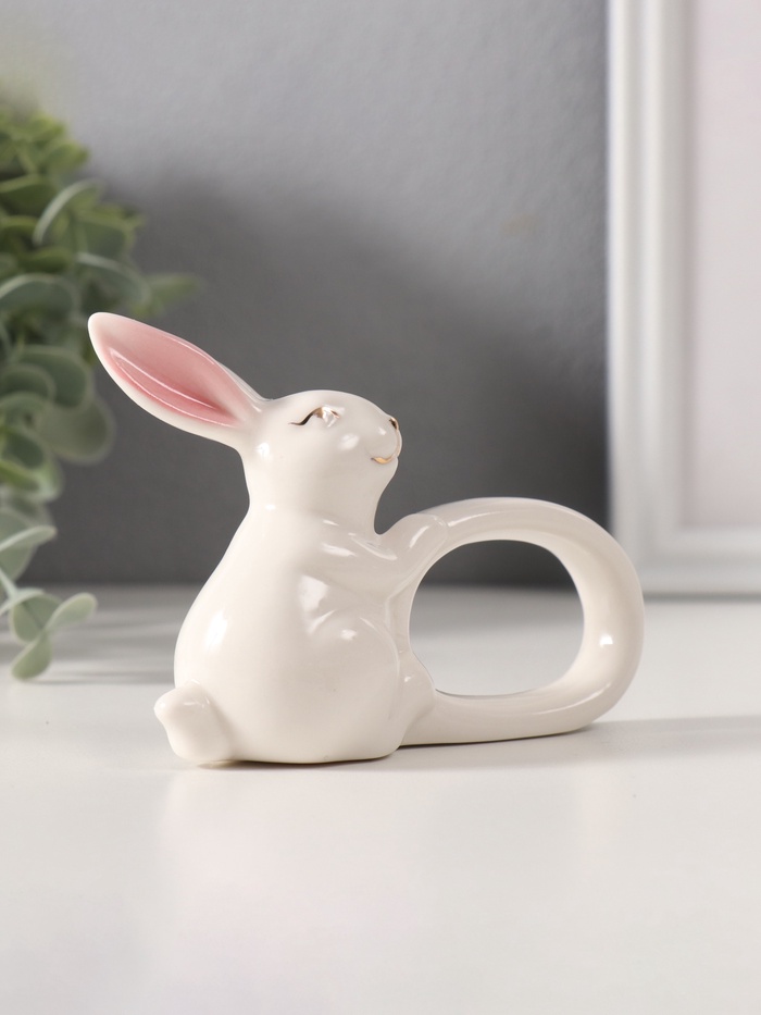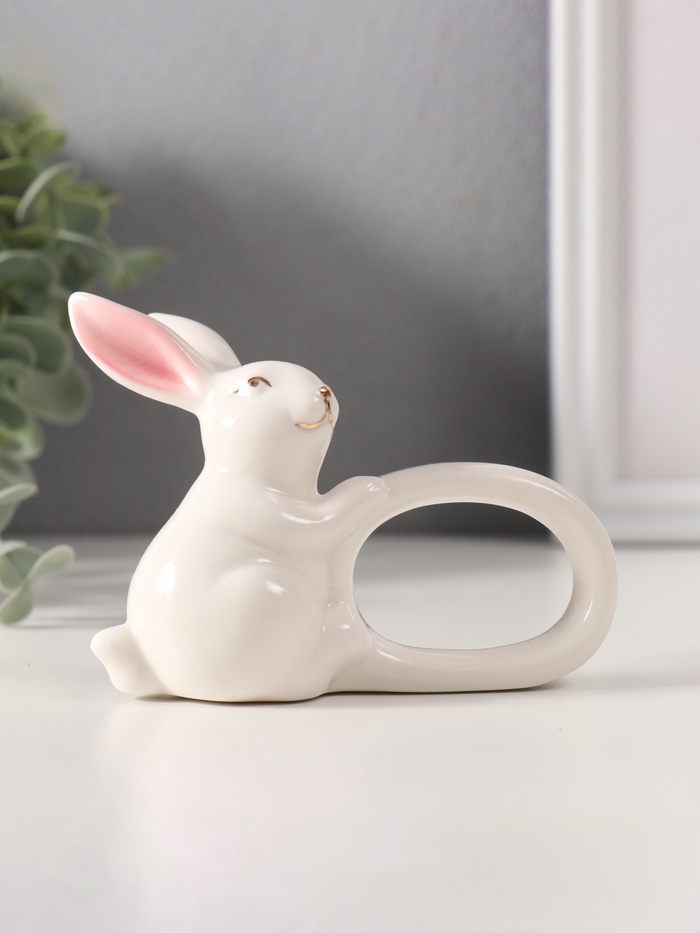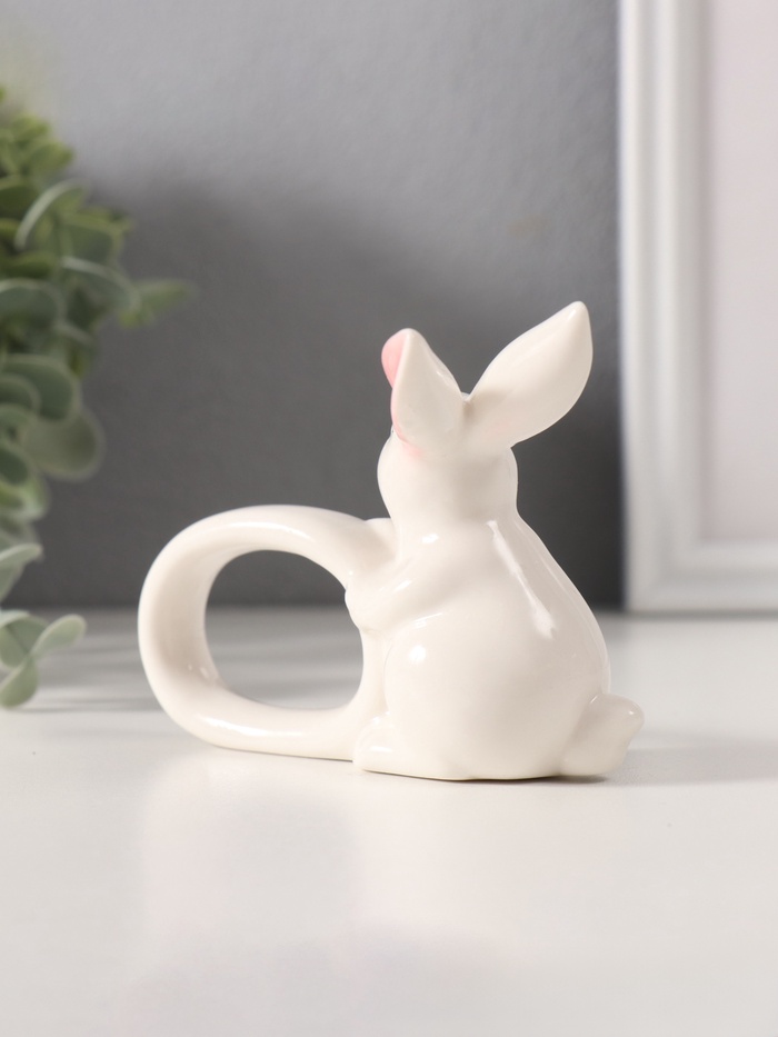 Фигурка - держатель для салфеток «Белый кролик с розовыми ушками», керамика, 5×10×7.5 см