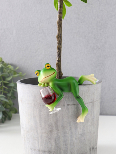 Фигурка для флорариума «Лягуха с бокалом - расслабляемся», полистоун, декор на кашпо, 9.5×4.5×7.5 см