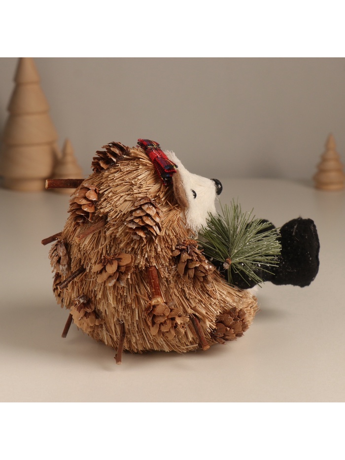 Фигурка «Ёжик с еловой веточкой и бантиком на голове», 12×10×14 см