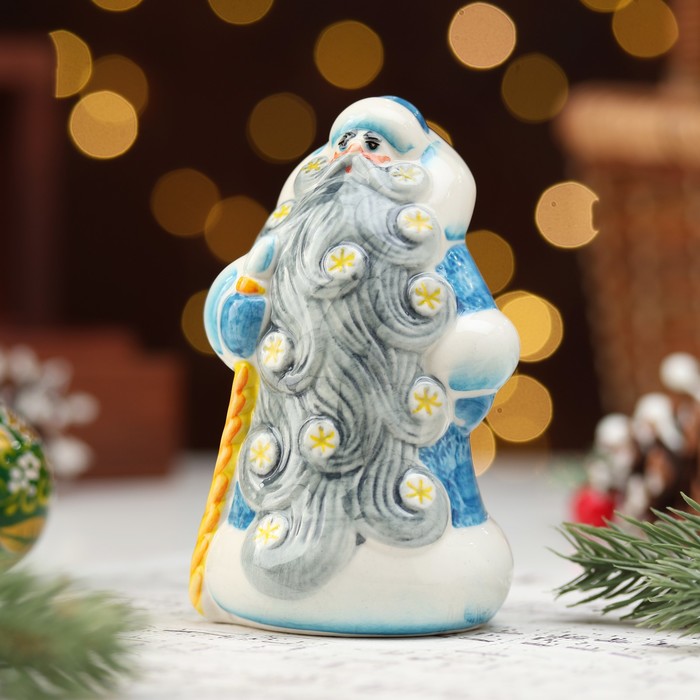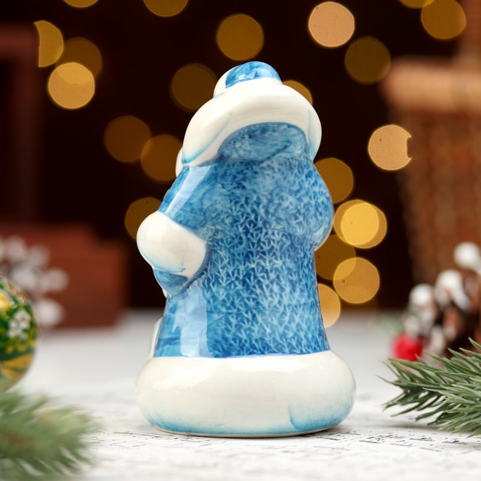 Фигурка фарфор «Дед Мороз Снеговей голубая шуба», 10 см