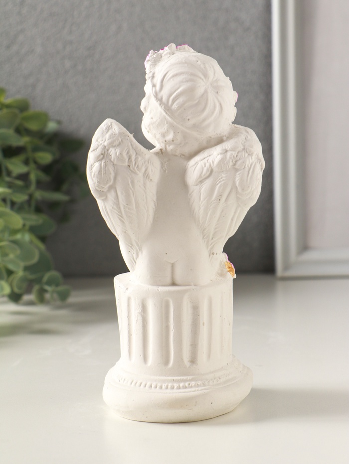 Фигурка гипс «Ангел на тумбе с цветами», 15×7 см, белый с росписью