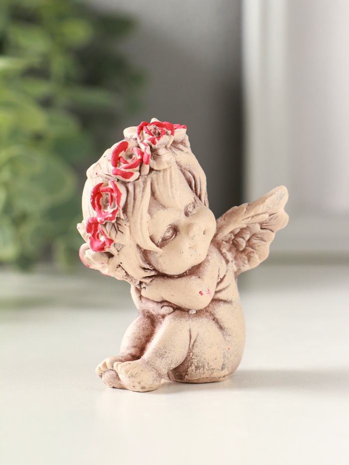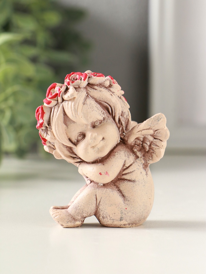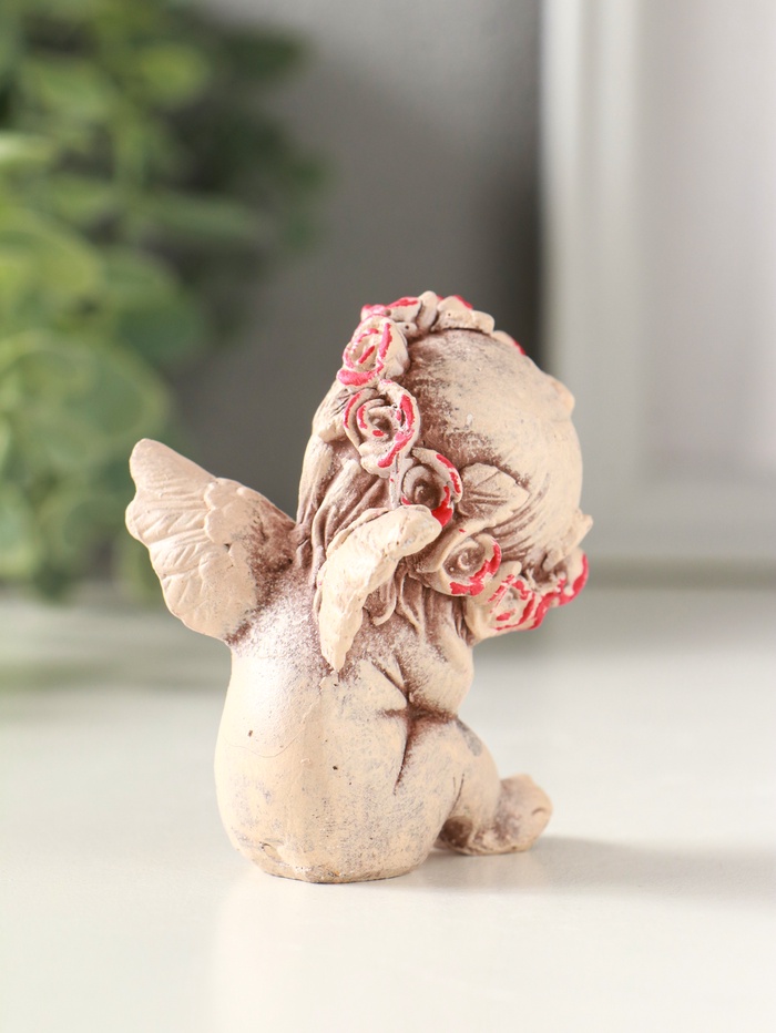 Фигурка гипс «Ангел в венке», 7 см, состаренный эффект, слоновая кость