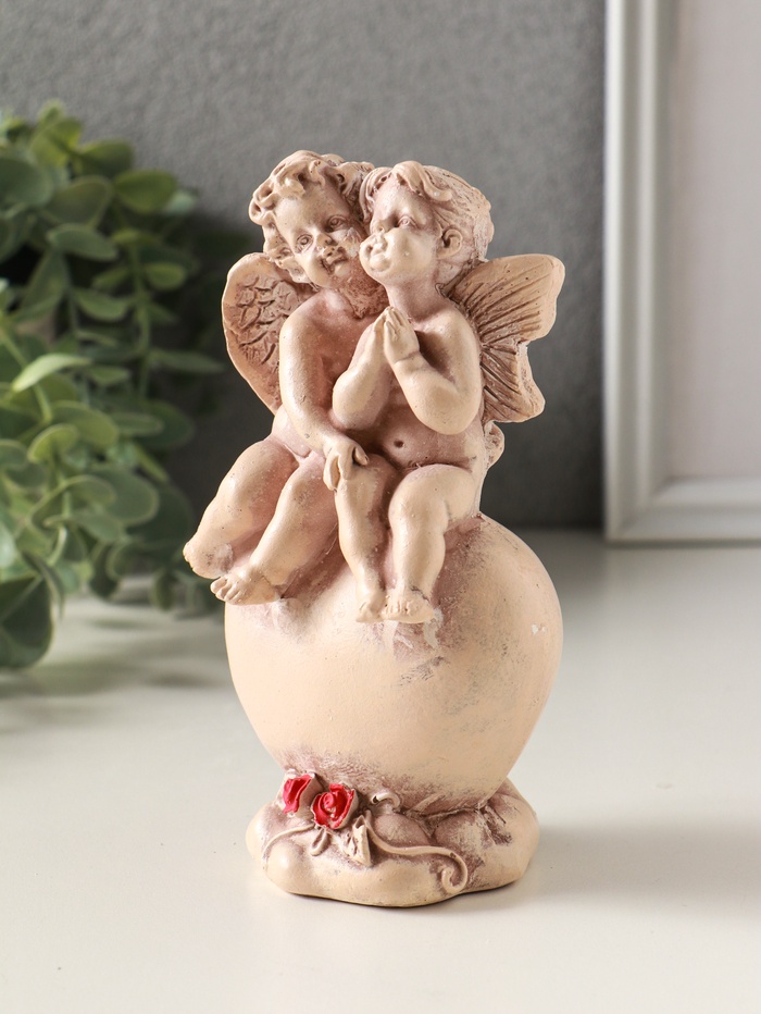 Фигурка гипс «Ангелочки на сердце», 15 см, эффект старения, слоновая кость