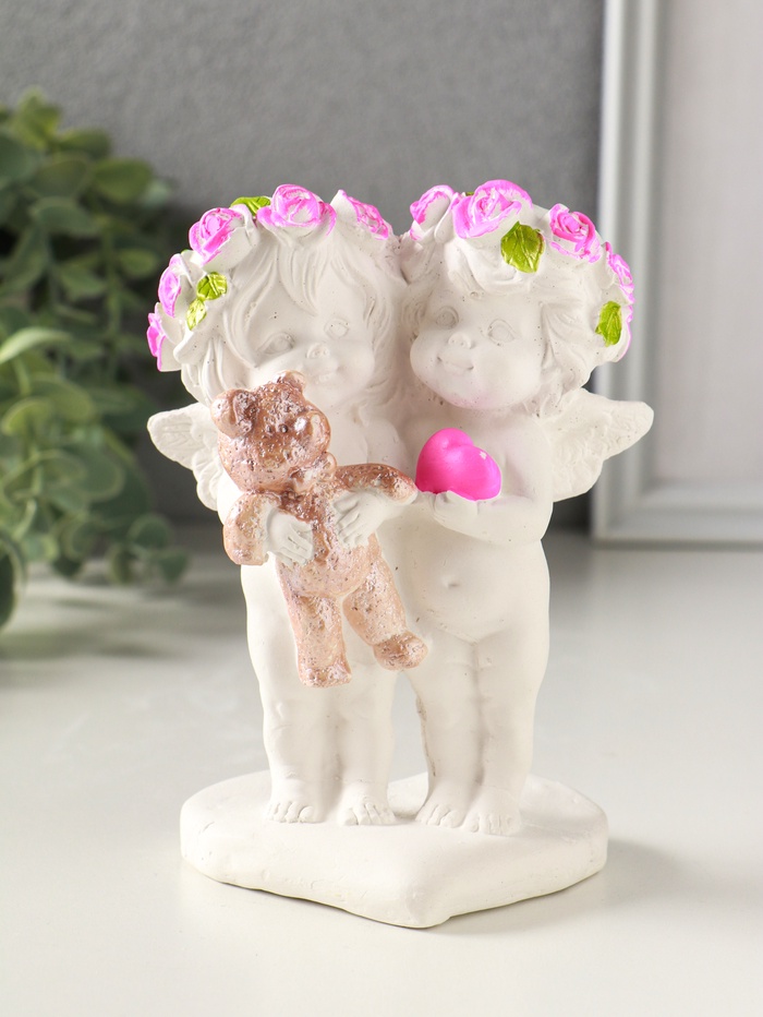 Фигурка гипс «Ангелочки с медведем», 13×7×9 см, белый с росписью