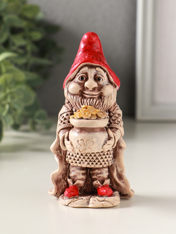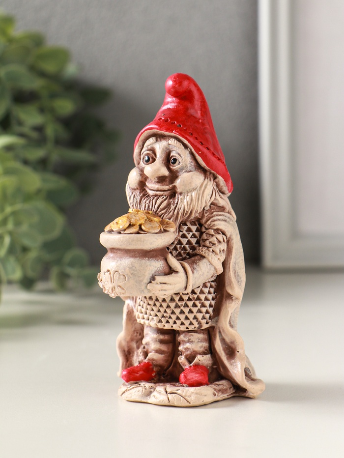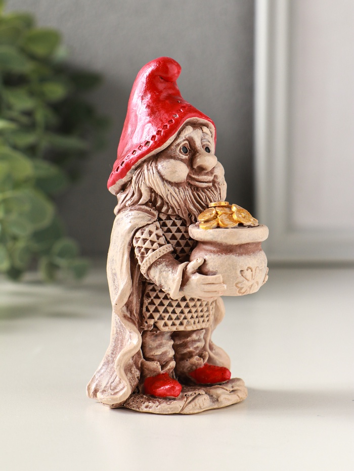 Фигурка гипс «Гном с мешком монет», 11×6 см, роспись, слоновая кость