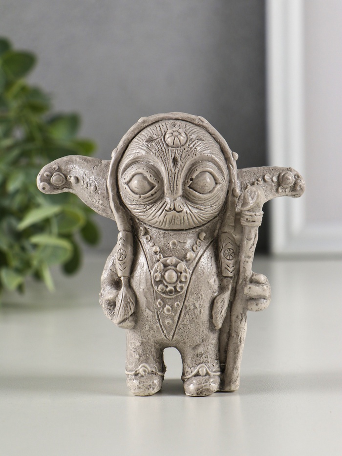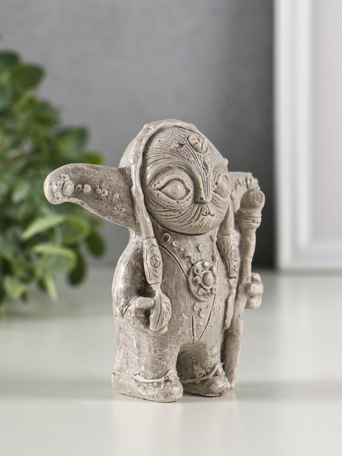 * Эффект состаренного камня: Фигурка покрыта специальной краской, которая создаёт впечатление, будто она высечена из настоящего валуна и прошла через века. Такая фактура отлично смотрится на полке, рабочем столе или в качестве элемента более сложной композиции.