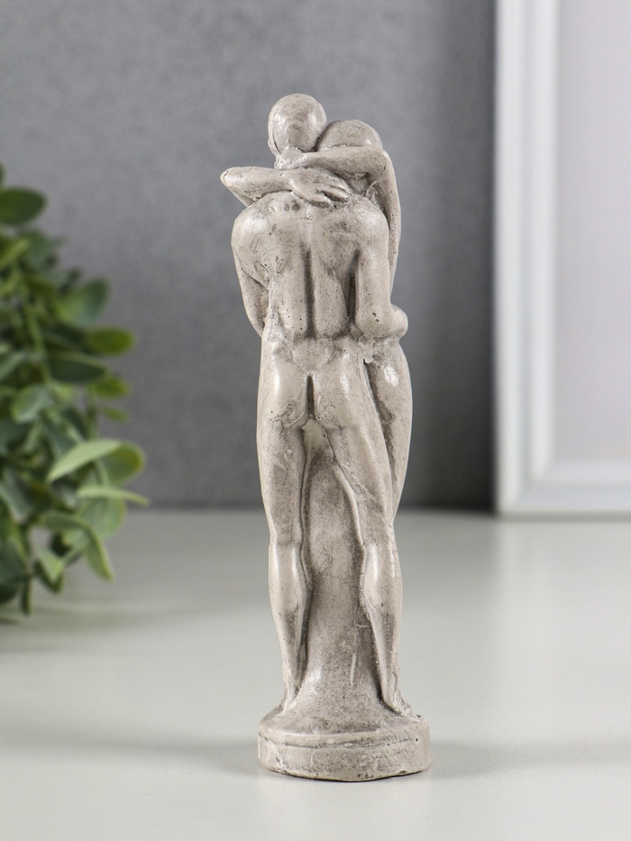 Эта гипсовая статуэтка влюблённой пары станет тёплым символом ваших чувств. Сдержанный серый цвет под камень придаёт образу благородство и делает скульптуру универсальным акцентом для интерьера. Фигурка передаёт нежный момент объятий, создавая атмосферу романтики и гармонии.