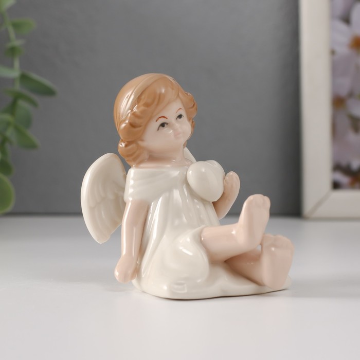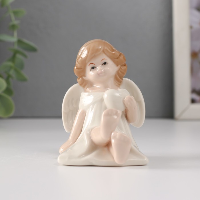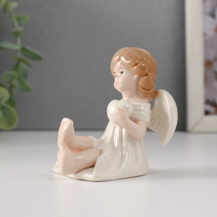 Фигурка керамика «Девочка-ангел в белом платье с сердцем сидит», 6.5×5×7 см