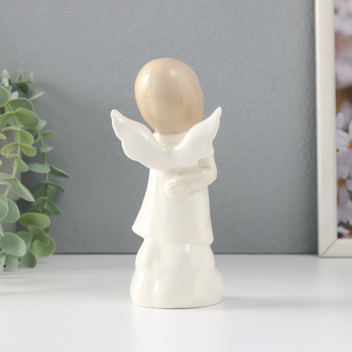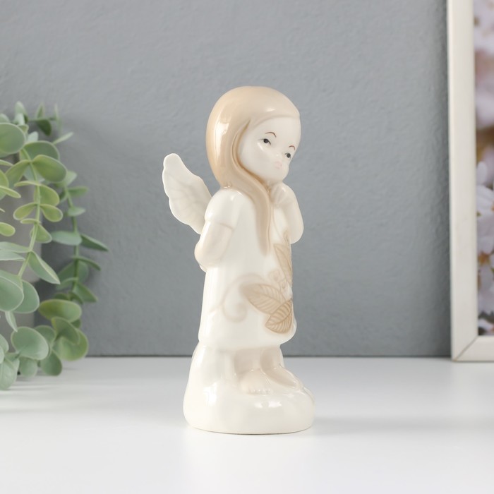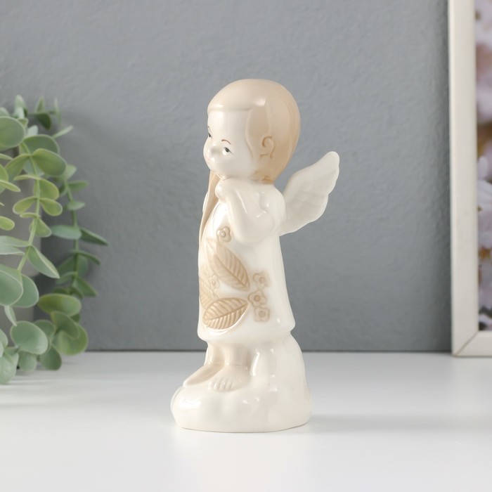 Фигурка керамика «Девочка-ангел в платье с листиками на облаке думает», 6.8×5.4×14.5 см