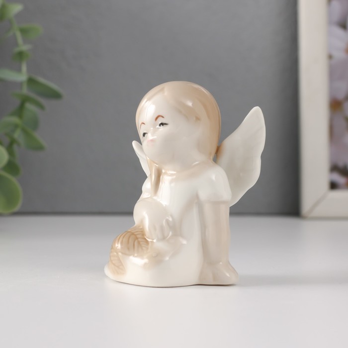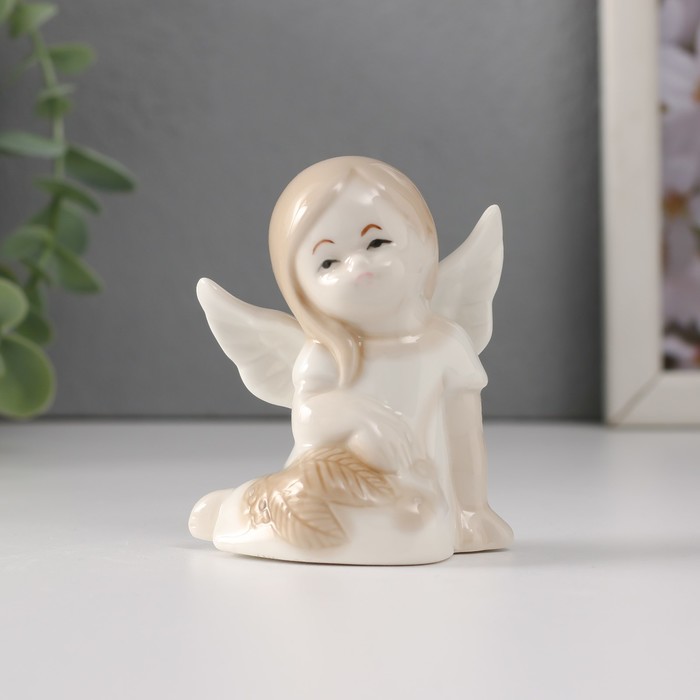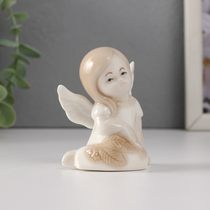 Фигурка керамика «Девочка-ангел в платье с листьями сидит», 5.8×3.5×7 см