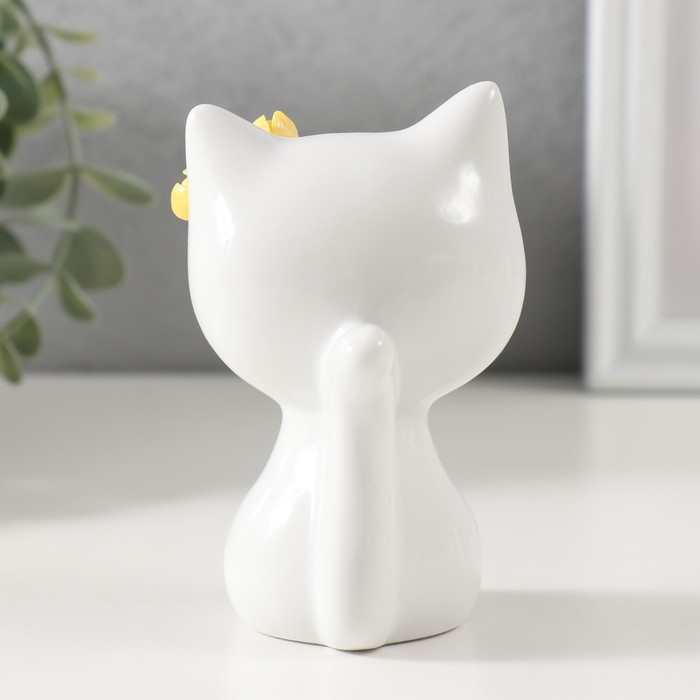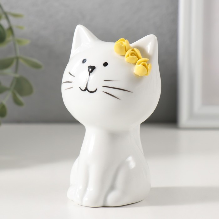 Фигурка керамика «Котик белый с жёлтыми цветочками на ушке, сидит», 7.2×6.5×10.3 см