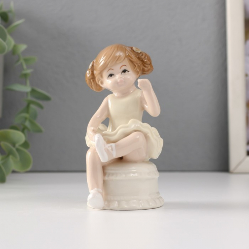 Фигурка керамика «Малышка-балерина в жёлтом платье, на пуфике», 5.8×5.7×10 см