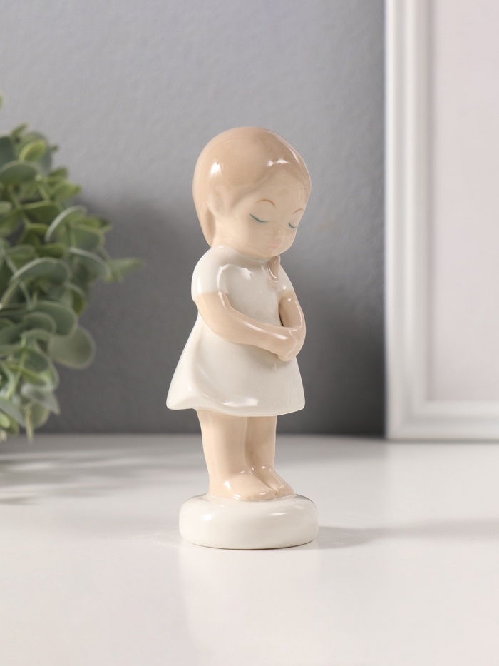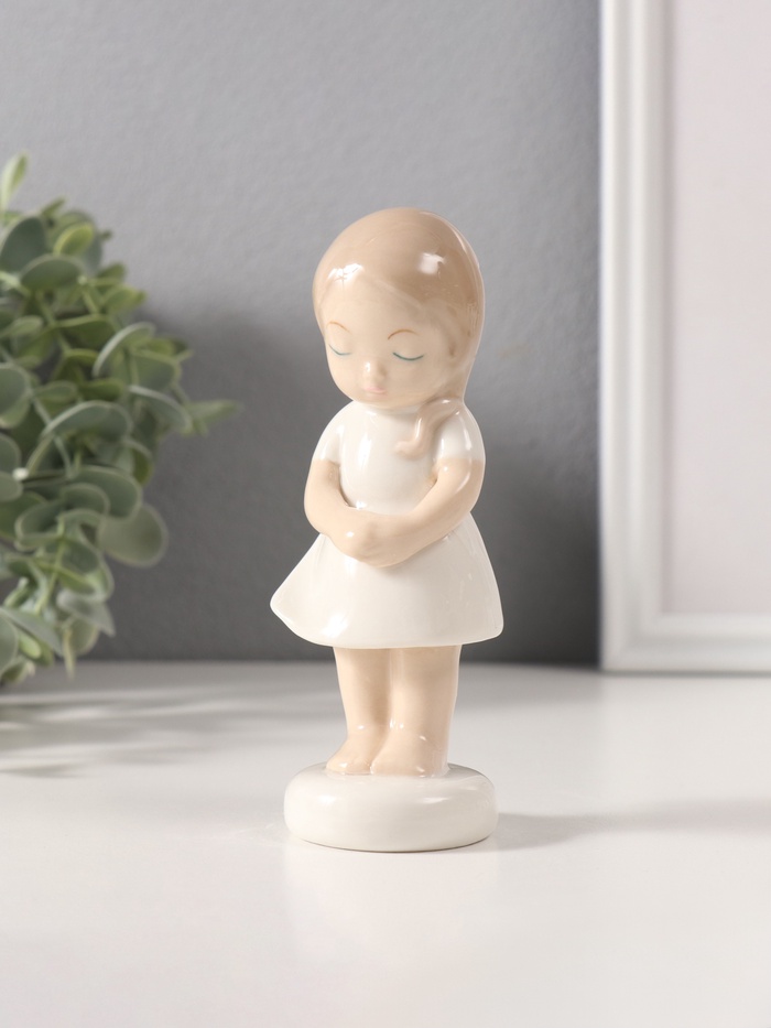 Фигурка керамика «Малышка скромница в белом платьице», 4×5×12 см