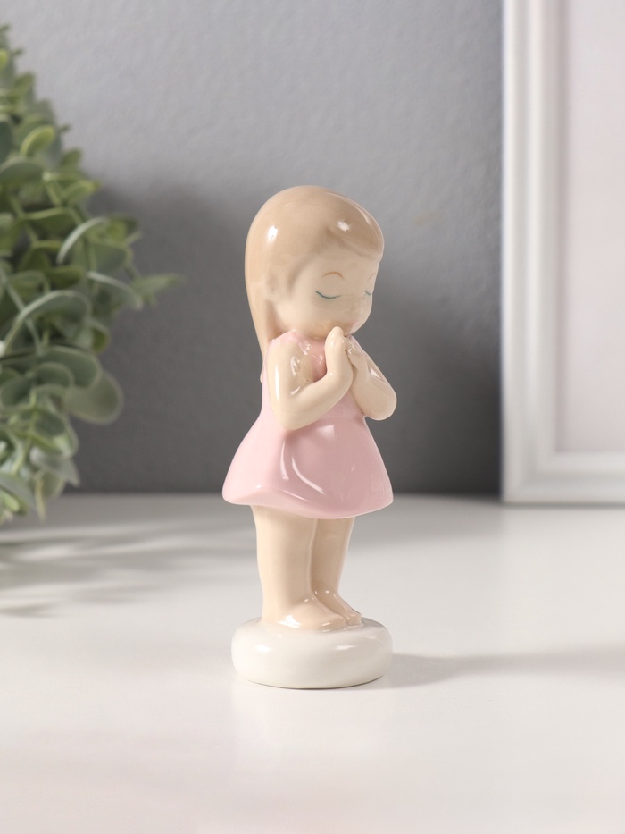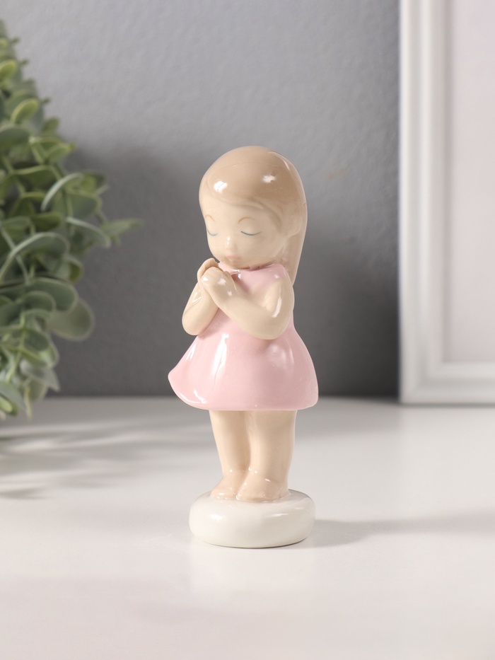 Фигурка керамика «Малышка скромница в розовом платьице», 4×5×12 см