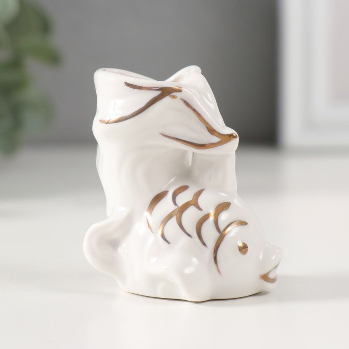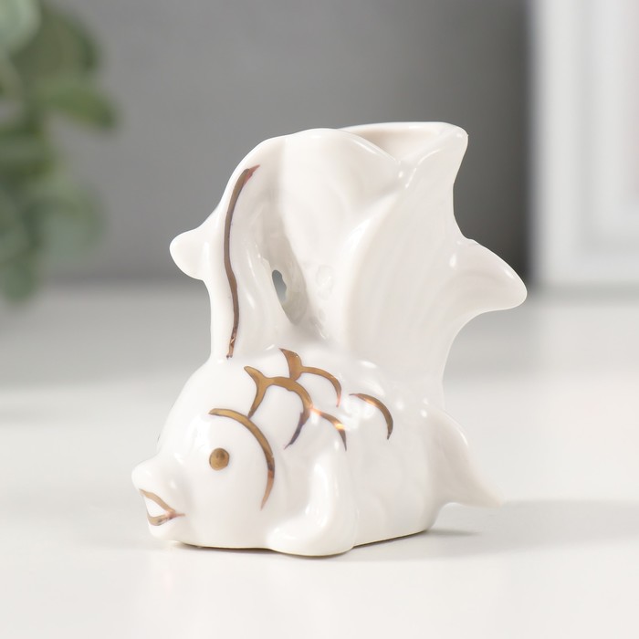 Фигурка керамика подставка д/зубочисток «Белая рыбка», с золотом, 5.2×4×5.5 см