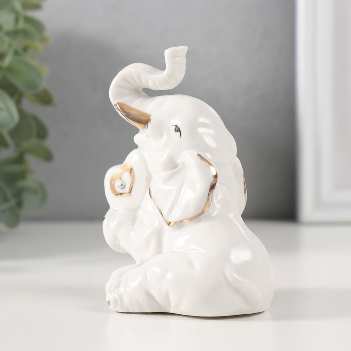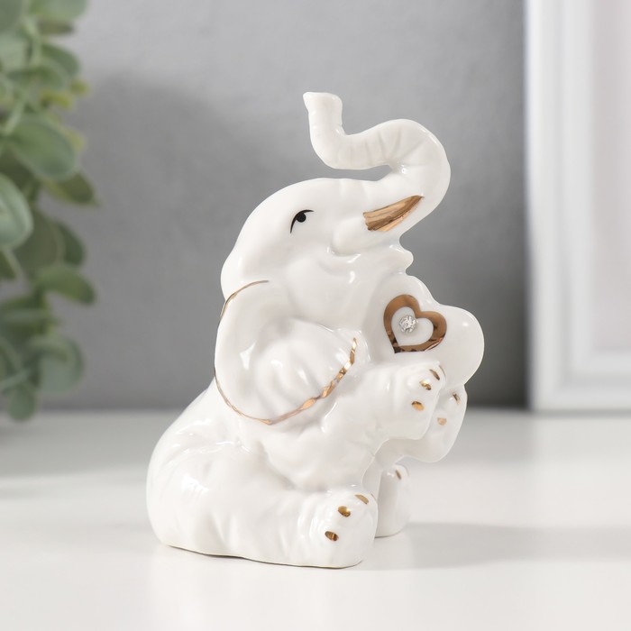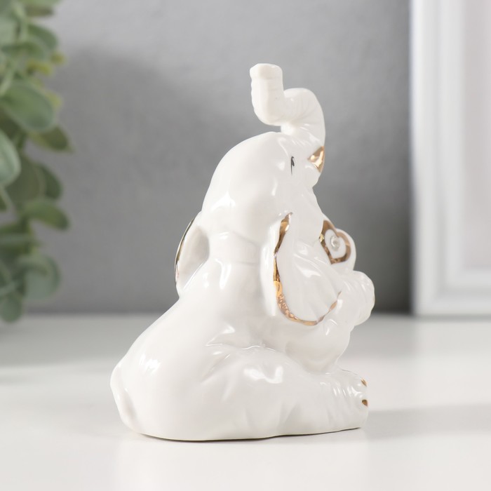 Фигурка керамика «Слон с сердечком», белый с золотом, 5.7×7×9.5 см