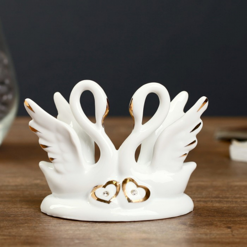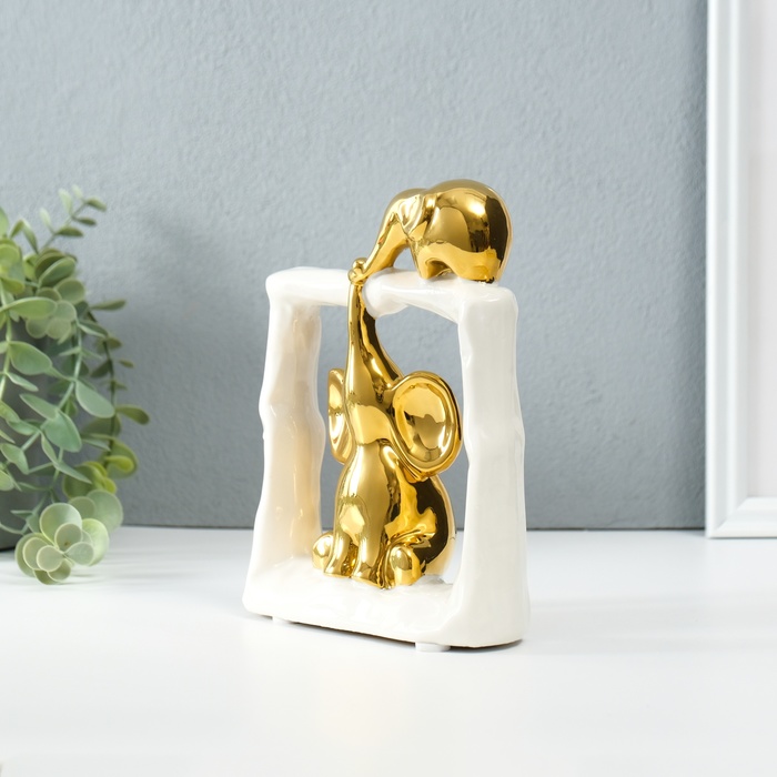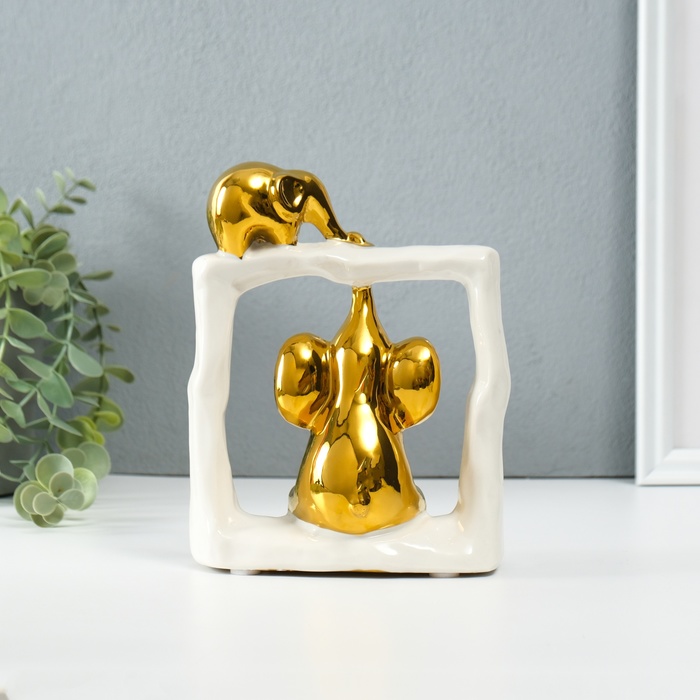Фигурка керамика «Слонята - поддержка. Квадрат», белый с золотом, 6×13.5×17.5 см