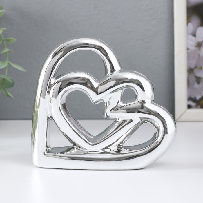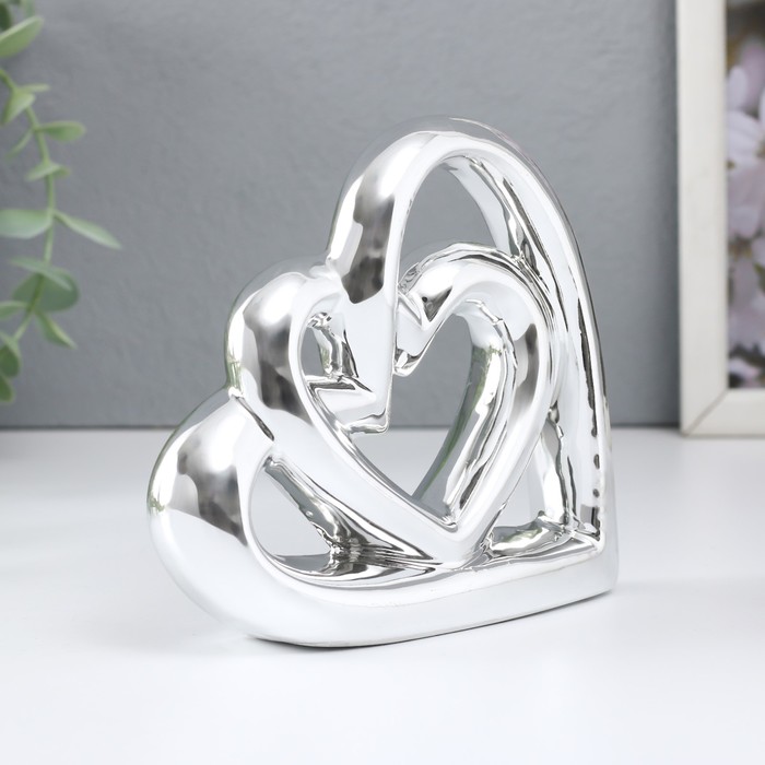 Фигурка керамика «Сплетённые сердца», серебро, 12.3×3.5×11.8 см