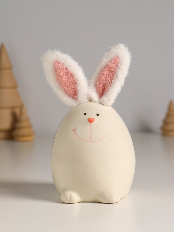 Фигурка керамика, текстиль «Зайчик в форме яйца», белый, 7.2×7.2×12.5 см