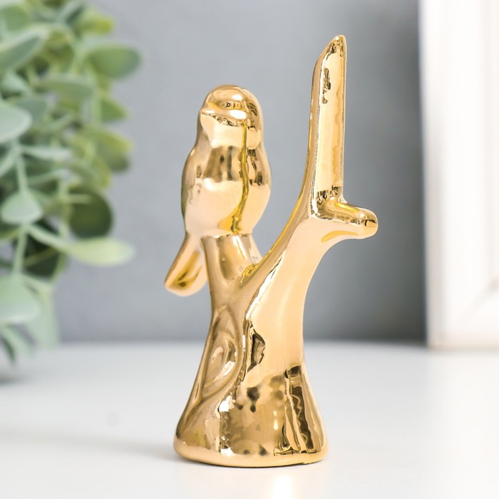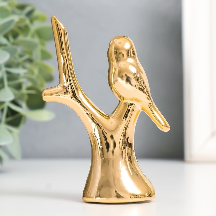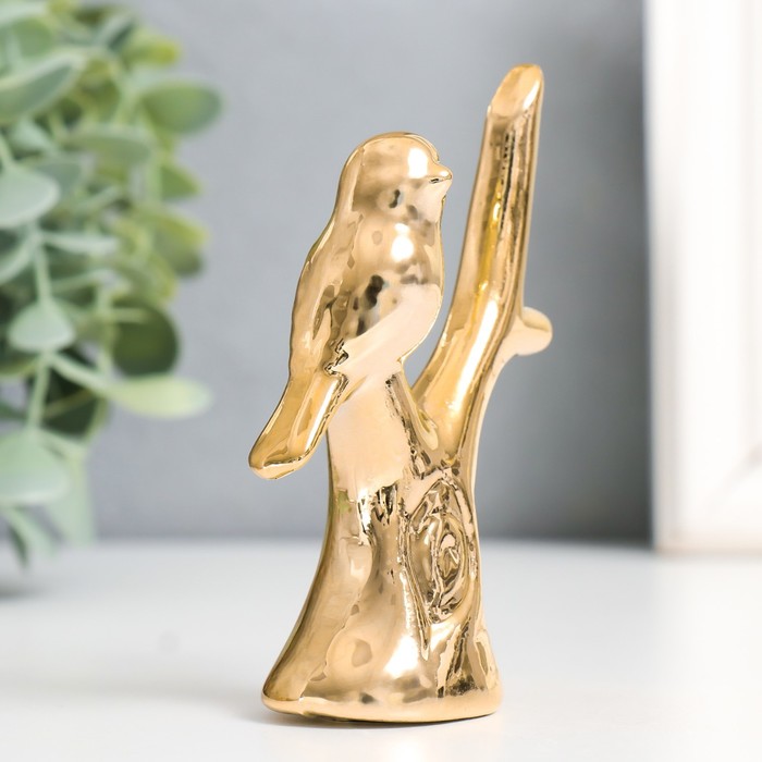 Фигурка керамика «Воробушек на дереве», под золото, 7.5×3.7×10.5 см