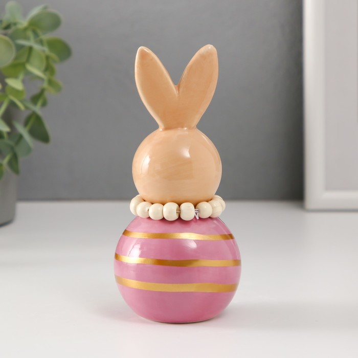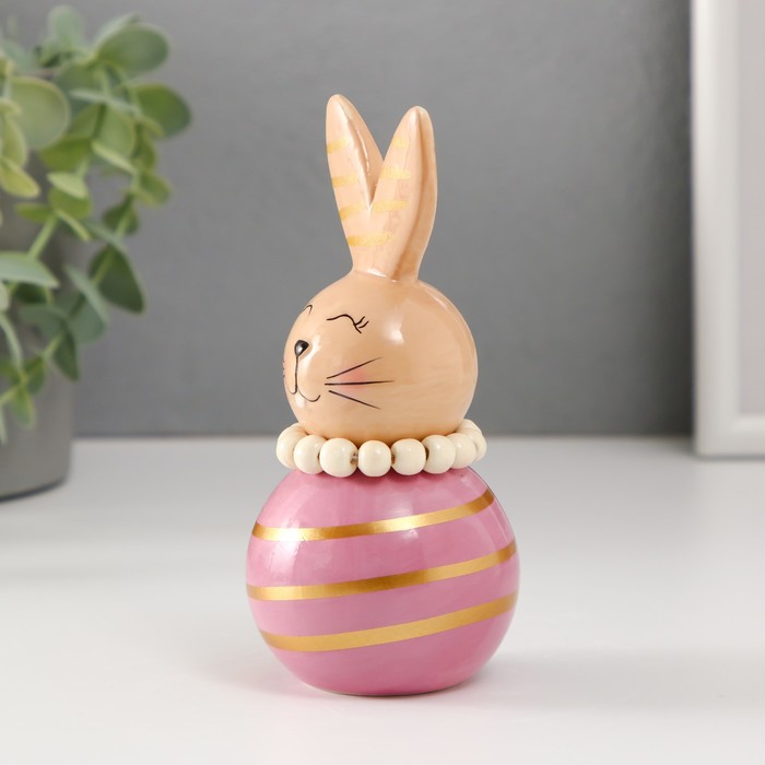 Фигурка керамика «Зайка-неваляшка с полосками», бежево-сиреневый, 6.3×6.3×13.3 см