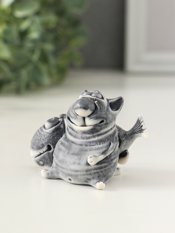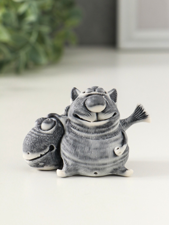 Фигурка несёт в себе простой и добрый посыл — пожелание удачи и благополучия, которое символизирует рыба в лапах у кота. Её приятно взять в руки, а прочность материала гарантирует, что этот сувенир будет радовать долгие годы. Это не просто вещь, а маленькая история, которую вы дарите.