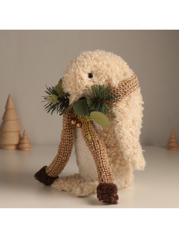 Фигурка «Кудрявый пингвин в шарфике с еловыми веточками», 13×15×23 см