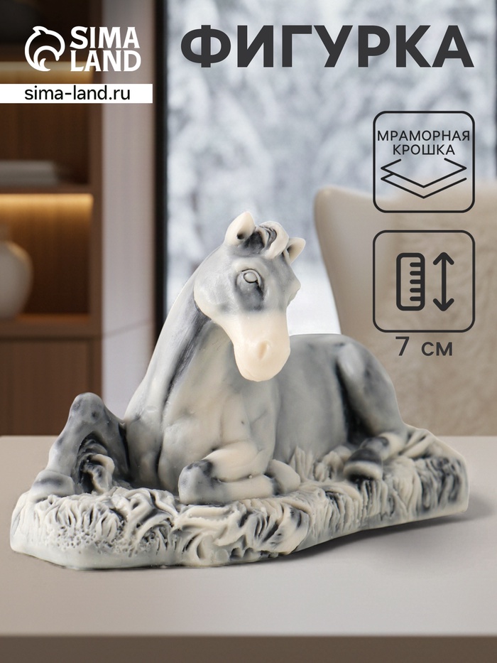 Эта лежащая лошадь из мраморной крошки приносит в дом умиротворение и природную гармонию. Её компактный размер делает фигурку универсальным элементом декора для полки, рабочего стола или праздничного стола.