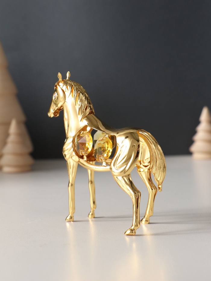 Фигурка металл «Лошадь» с 4 жёлтыми хрусталиками, 9×3×9 см