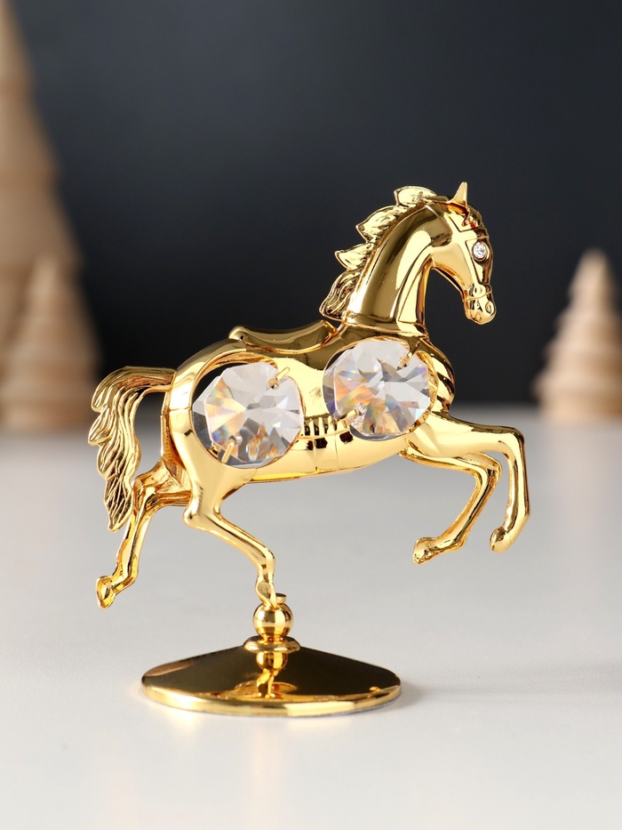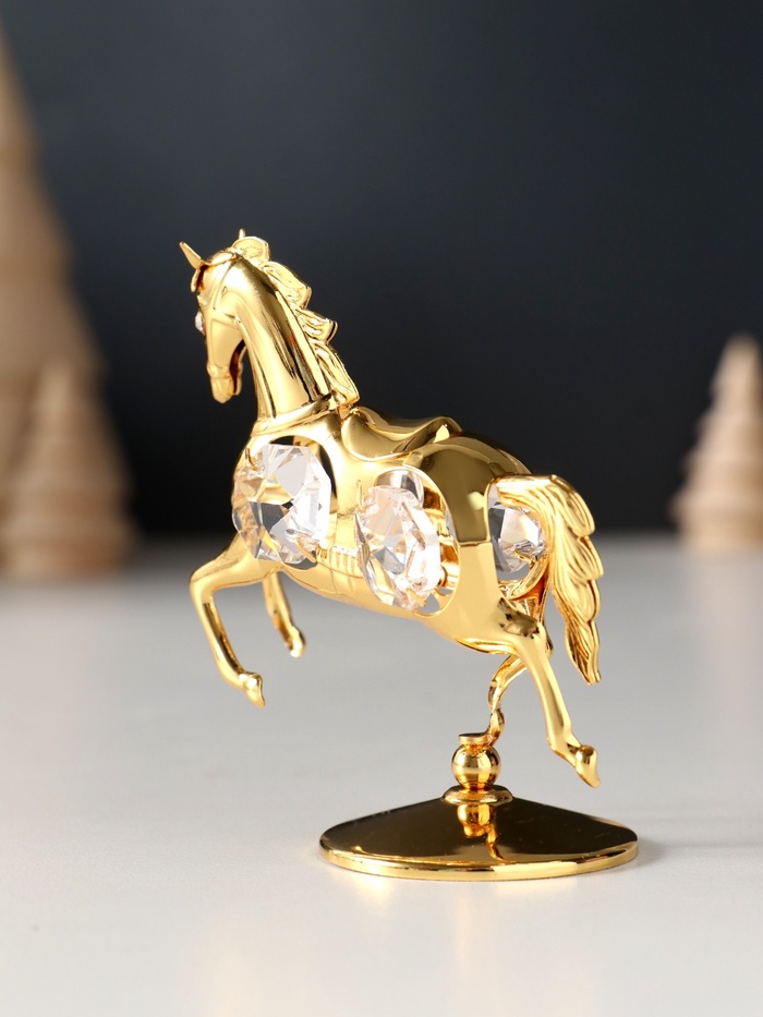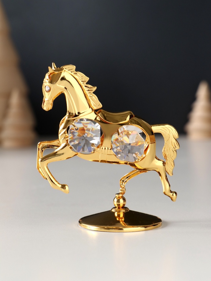 Фигурка металл «Лошадка маленькая» с 4 прозрачными хрусталиками на подставке, 6.5×4×8.5 см