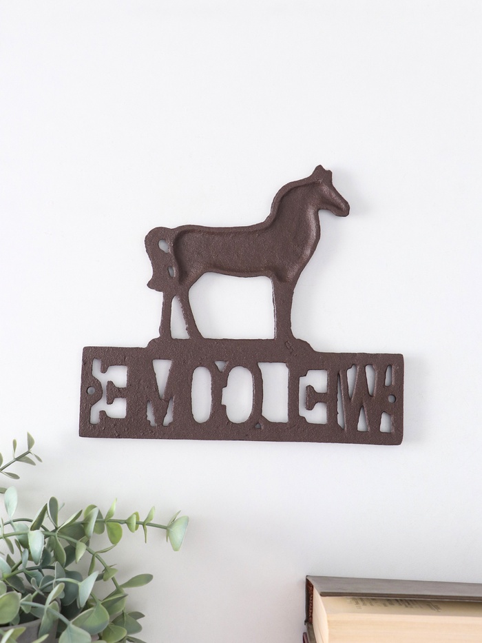 Добавьте нотку уюта и тепла в ваш интерьер с этой изящной чугунной фигуркой. Стилизованное изображение коня с приветственным посылом станет выразительным акцентом на стене, привнося в пространство дух домашнего очарования и природной гармонии.