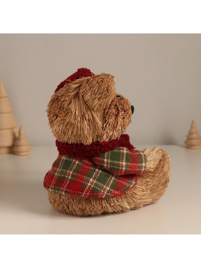 Этот новогодний мишка в колпаке станет душой вашего праздника. Одетый в уютный клетчатый костюм, он создаёт атмосферу домашнего тепла и рождественского чуда, напоминая о самых добрых зимних традициях.