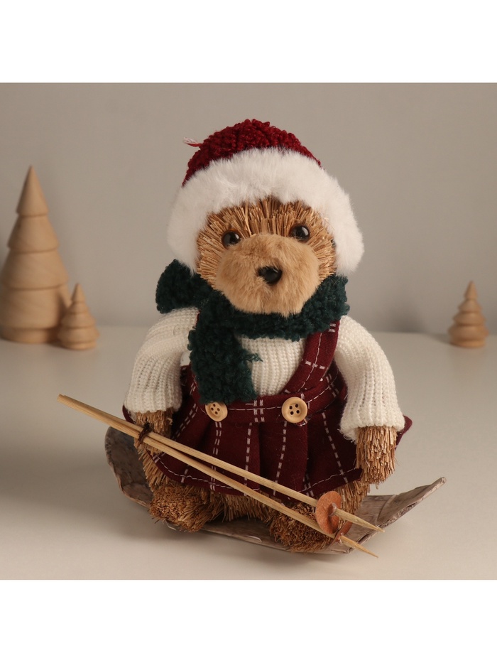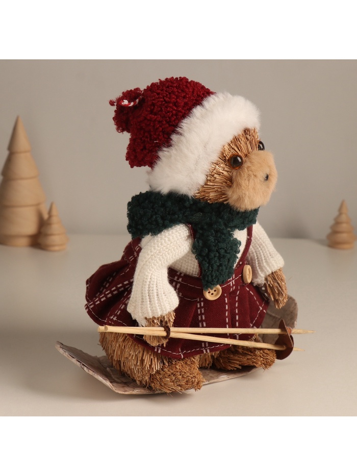 Фигурка новогодняя «Мишка в зимнем сарафане на лыжах», 20×19×11.5 см