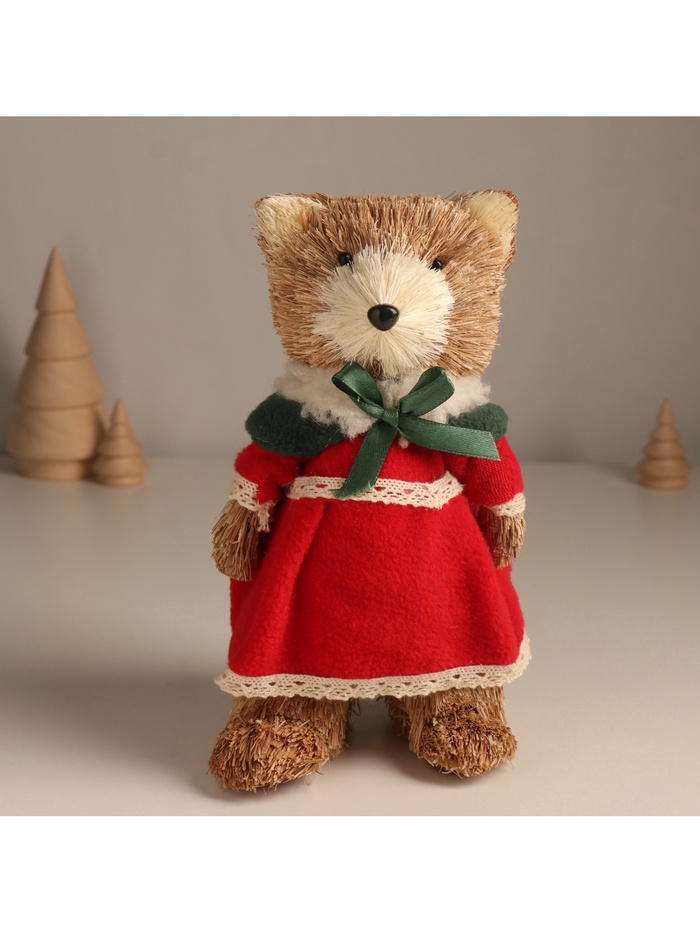 Смешение современных материалов таких, как пластик и текстиль, с натуральной соломой и пенопластом, придаёт изделию лёгкость и стойкость. Этот зимний медвежонок станет эффектным акцентом среди вашего праздничного убранства, добавляя нотку волшебства в каждое помещение.