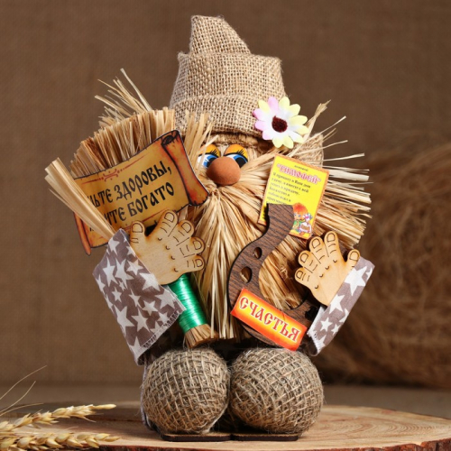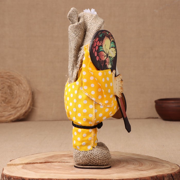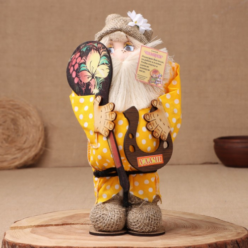 Фигурка - оберег «Домовой. Славуся в льняном колпаке, с ложкой и подковой», МИКС