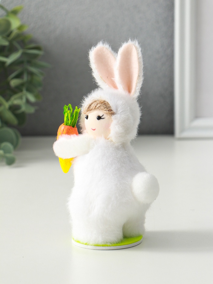 Фигурка пасхальная «Малыш в костюме кролика с морковкой», 7.5×5.5×14.5 см